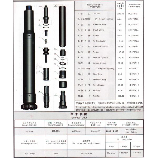 Introduction of Numa125-275mm dth hammer: